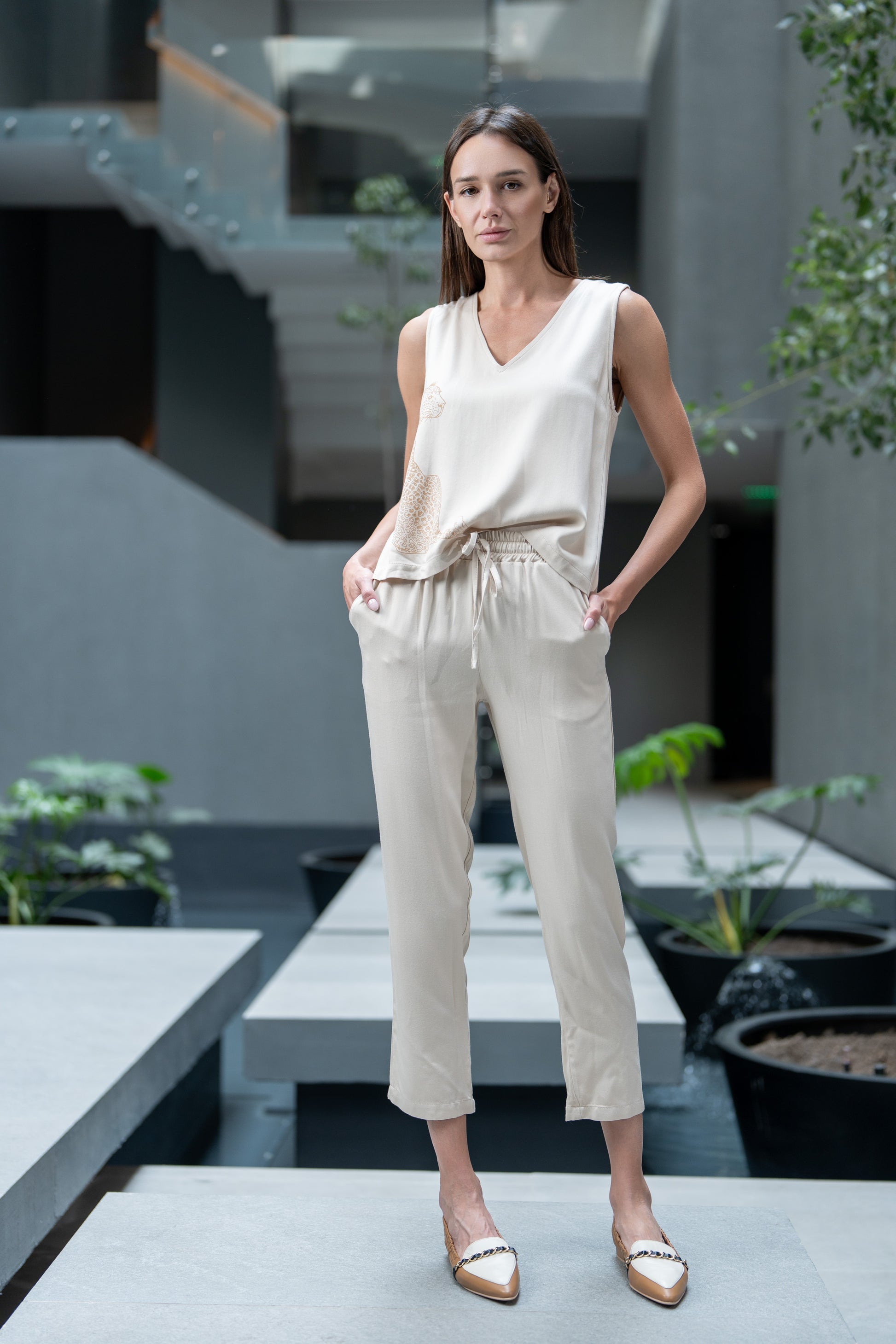 Top de viscosa sin mangas con estampado sutil de leopardo