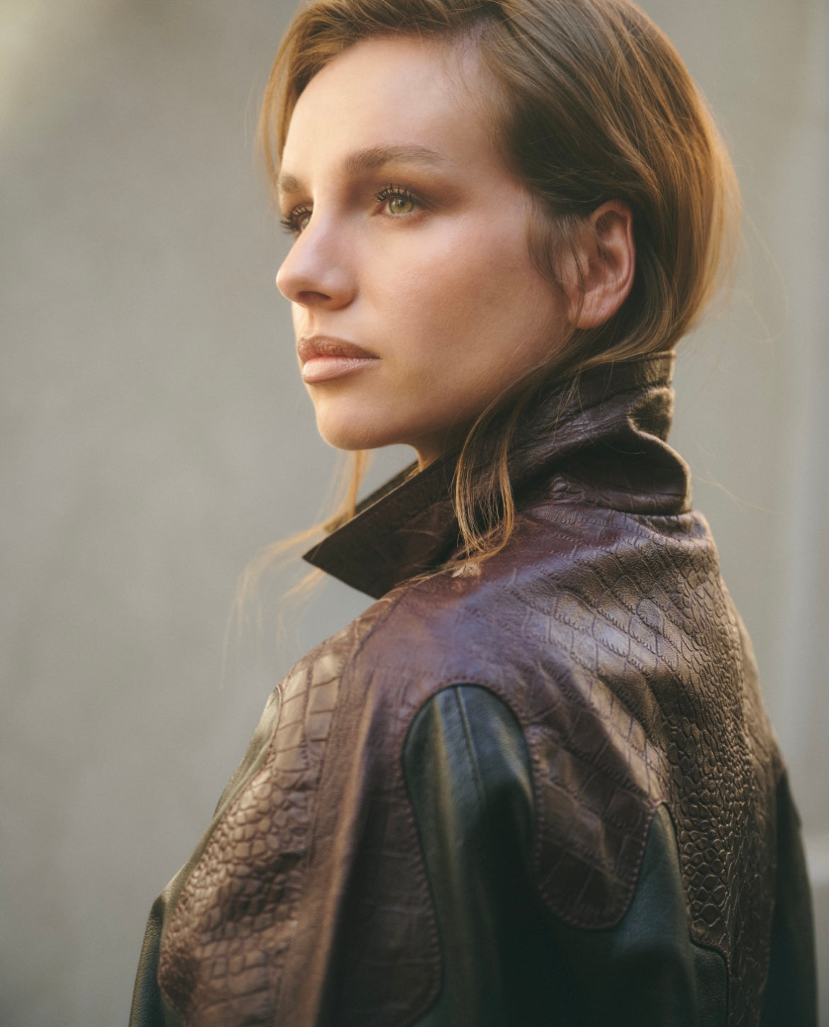 CHAQUETA DE CUERO CROCO CHOCOLATE