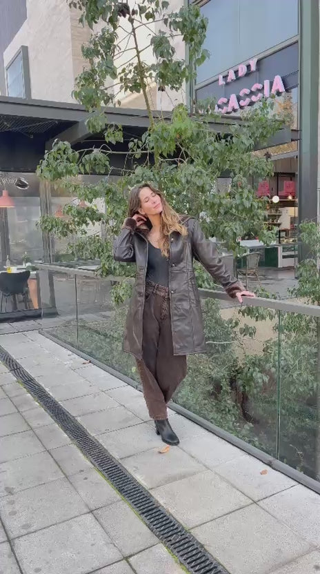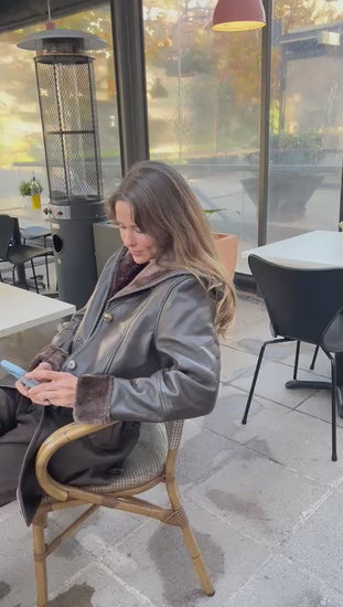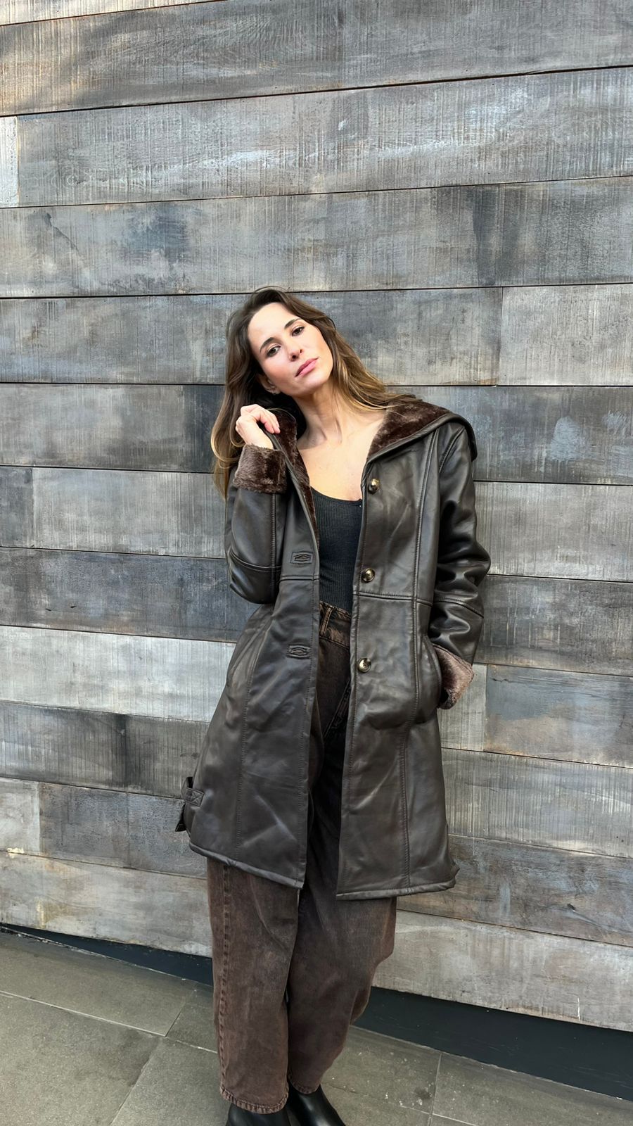 Nuestro gamulán de cuero 100% de oveja regresa esta temporada en un tono chocolate profundo, con un giro moderno que marca tendencia: forro y piel interior en color chocolate, el must absoluto de este invierno.