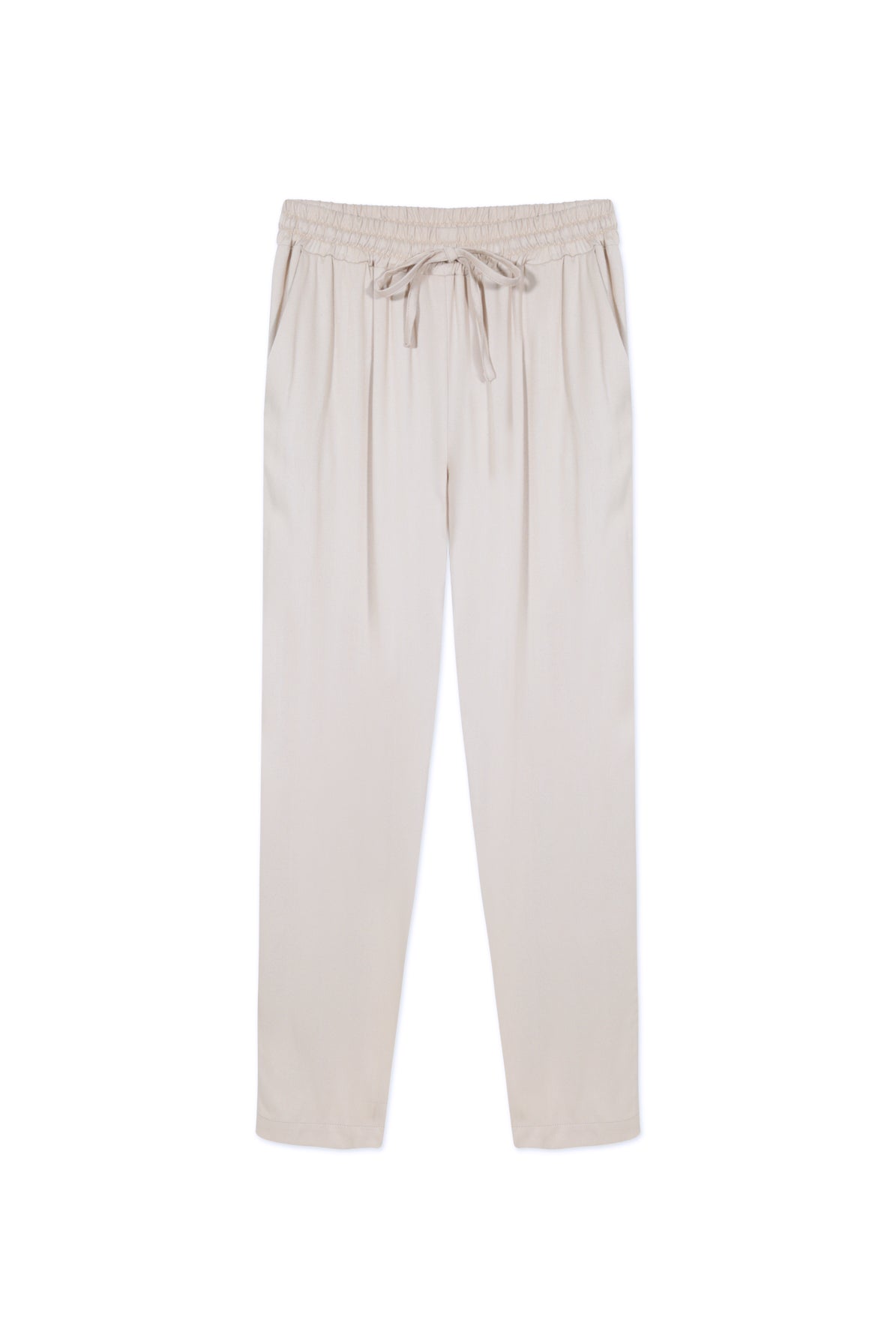 Versatilidad y estilo que se adaptan a ti. Este pantalón de 100% viscosa en color crudo es perfecto para el día a día. Su tela importada y elegante, con una caída cómoda y fluida, te garantiza frescura y sofisticación. Gracias a su diseño elasticado y su amarra ajustable, se adapta perfectamente a tu cuerpo para ofrecerte máxima comodidad.